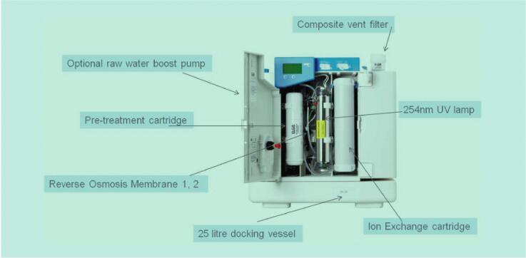 實驗室超純水系統是一種生產超純水的系統。超純水是一種純度高的水,是指將水中的導電介質幾乎完全去除,同時把不離解的氣體、膠體以及有機物(包括細菌)也去除至很低程度的水。其導電率一般為0.1~0.055uS/cm,電阻率(25℃)>10×106Ω/cm,含鹽量<0.1mg/L,純水(理論上)為0.055uS/cm,電阻率(25℃)為18.3×106Ω/cm。
